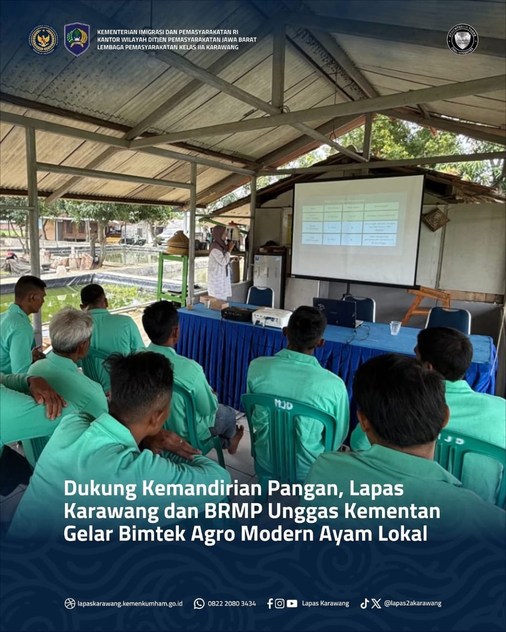 KARAWANG |UNGKAPREALITA.COM| Balai Riset dan Manajemen Perbibitan (BRMP) Unggas dan Aneka Ternak, Kementerian Pertanian RI, melaksanakan kegiatan Bimbingan Teknis (Bimtek) dan penyebaran hasil Agro Modern Ayam Lokal di Sarana Asimilasi dan Edukasi (SAE) Lapas Kelas IIA Karawang.