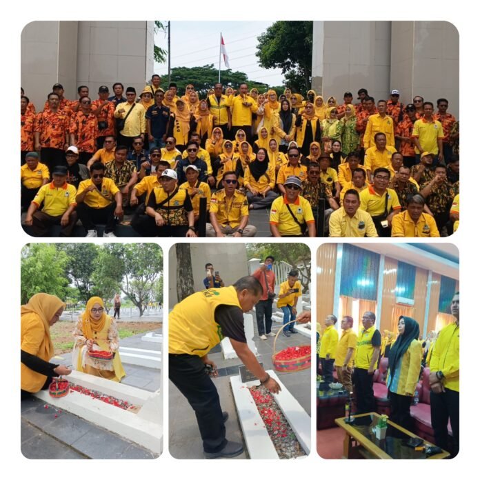 KARAWANG | UNGKAPREALITA.COM | Dalam rangka memperingati Hari Ulang Tahun (HUT) Partai Golkar ke-61, Dewan Pimpinan Daerah (DPD) Partai Golkar Kabupaten Karawang menggelar kegiatan ziarah dan tabur bunga di Taman Makam Pahlawan Pancawati, Karawang, pada Senin (20/10/2025).