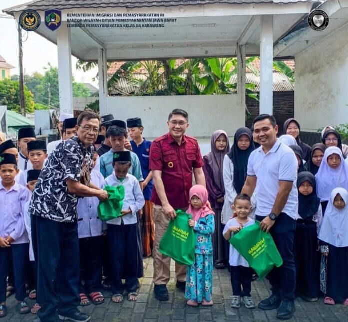 KARAWANG | UNGKAPREALITA.COM | Lembaga Pemasyarakatan (Lapas) Kelas IIA Karawang menyalurkan bantuan sosial berupa 200 paket daging kurban kepada masyarakat di Kelurahan Adiarsa Timur dan Karawang Wetan, Sabtu (7/6/2025). Kegiatan ini merupakan bagian dari implementasi Program Akselerasi Menteri Imigrasi dan Pemasyarakatan RI, Agus Andrianto, dalam bentuk pemberian bantuan sosial kepada keluarga warga binaan dan masyarakat sekitar yang membutuhkan.