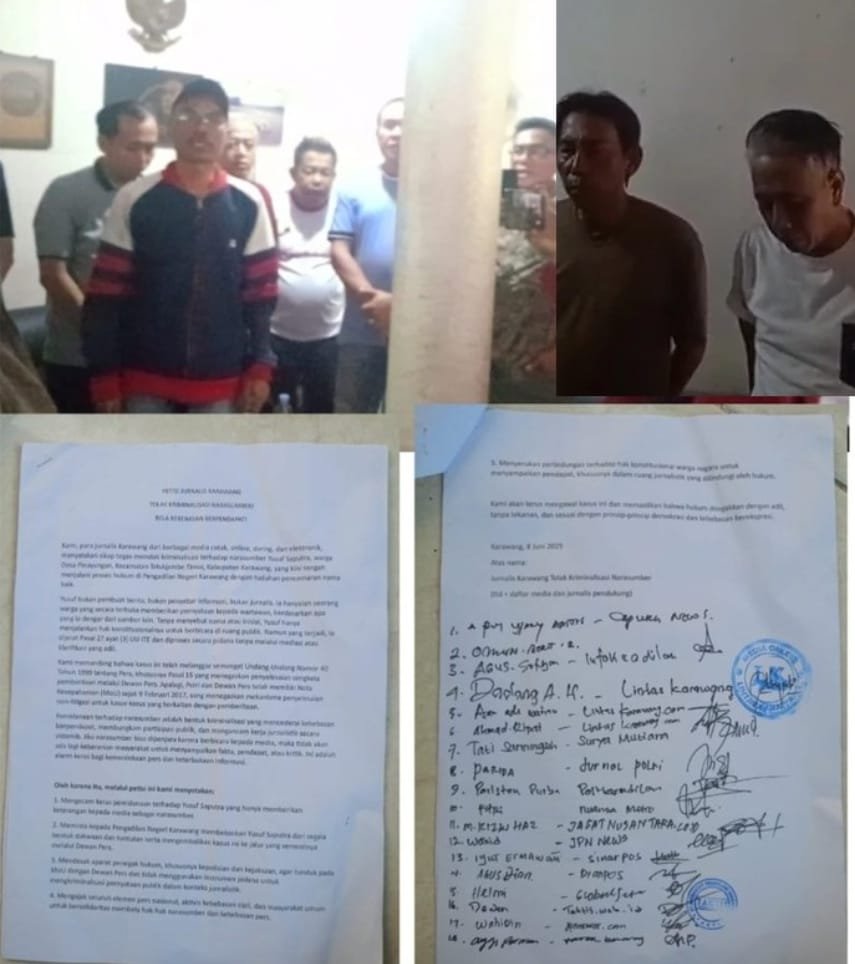 KARAWANG | UNGKAPREALITA.COM | Dukungan terhadap Yusuf Saputra, warga yang dijerat hukum usai mengkritik Kepala Desa Pinayungan, terus bergulir. Setelah menjadi narasumber dalam sebuah pemberitaan, Yusuf kini duduk di kursi terdakwa. Kasus ini memantik reaksi keras dari kalangan jurnalis Karawang yang menilai terjadi upaya kriminalisasi terhadap narasumber media.