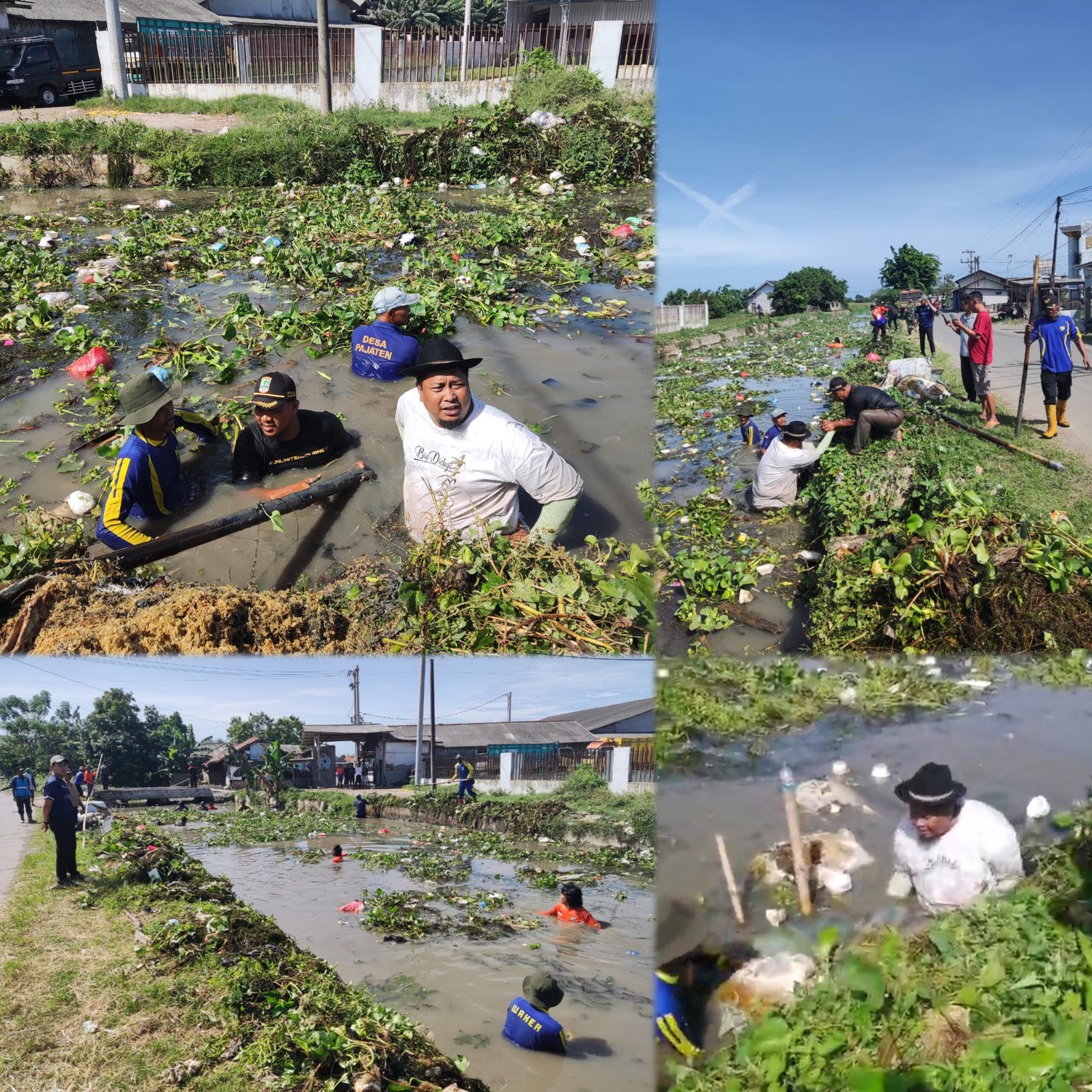 KARAWANG | UNGKAPREALITA.COM | Camat Cibuaya, Kabupaten Karawang, menunjukkan kepedulian terhadap kebersihan lingkungan dengan turun langsung membersihkan sampah dan eceng gondok di aliran sungai sekunder wilayahnya, Minggu (09/11/2025).