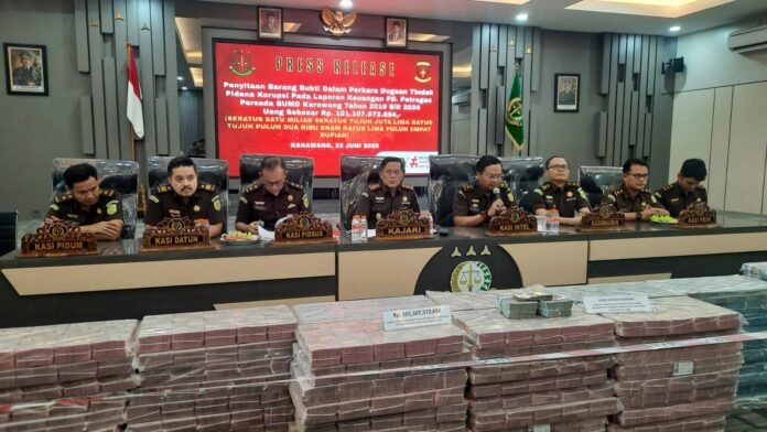KARAWANG | UNGKAPREALITA.COM | Kejaksaan Negeri (Kejari) Karawang menyita uang sebesar Rp101.107.572.654 dari dua rekening Bank Jabar milik PD Petrogas Persada.Penyitaan ini dilakukan sebagai bagian dari pengusutan kasus dugaan tindak pidana korupsi pada laporan keuangan perusahaan milik daerah tersebut.