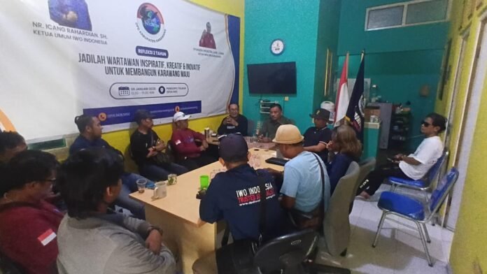 Karawang | UNGKAPREALITA.COM | Ikatan Wartawan Online Indonesia (IWOI) DPD Karawang menggelar rapat koordinasi organisasi pada pagi hari, Sabtu 13 Desember 2025 di Perum Jasmine Village Melbourne, Karawang Wetan. Rapat tersebut membahas evaluasi kinerja tim, penyusunan program kerja tahun 2026, serta perubahan dan penataan struktur kepengurusan Koordinator Wilayah (Korwil).