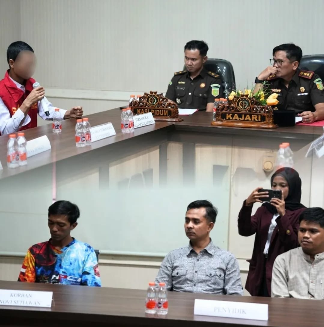 Proses perdamaian antara korban dan tersangka dilaksanakan di Aula Kejari Karawang pada Senin (7/7/2025) pukul 15.00 WIB. Proses ini dipimpin langsung oleh Kepala Kejaksaan Negeri Karawang, Syaifullah, S.H., M.H., didampingi Kepala Seksi Tindak Pidana Umum, jaksa fasilitator, dan dihadiri penyidik dari Polsek Telukjambe Timur, orang tua tersangka, Ketua RT/RW setempat, serta tokoh agama dari lingkungan tempat tinggal tersangka.